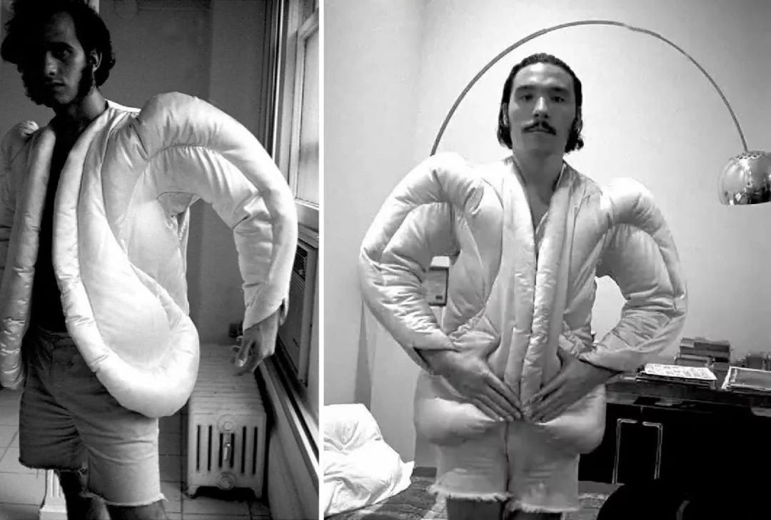 另一件赫赫有名的羽绒服则是Norma Kamali设计于上世纪70年代初的“睡袋外套”,庞大的羽绒服犹如睡袋般将身体完好包裹,却又带些oversize的时髦意味,Lady Gaga也曾在巡回演唱会中穿着这款“睡袋外套”的复刻版。