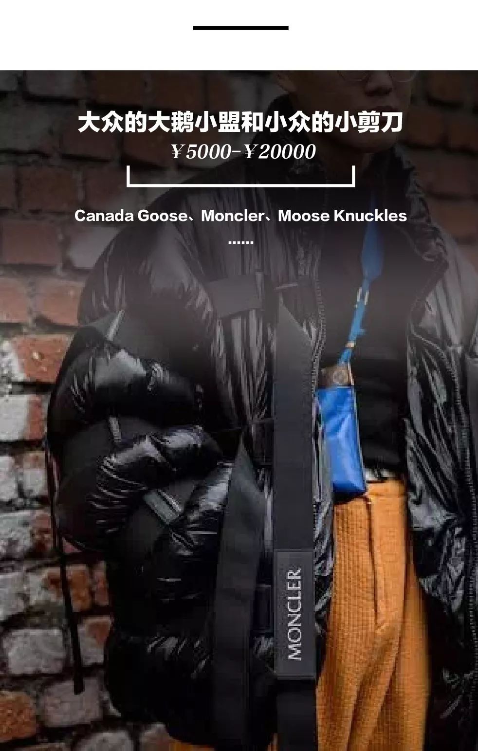 谈到羽绒服就避不开这两年风头正劲的Canada Goose和Moncler,不仅是欧洲皇室的最爱,价格也逼近奢侈品品牌。只不过也因为太过火爆,导致如今街头目之所及的大鹅小盟多到真假难辨。