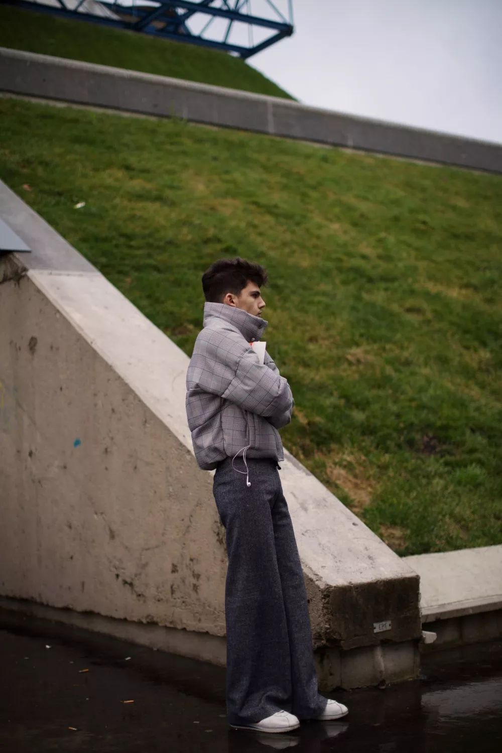 上衣羽绒服,下装紧身裤,会因上下比例对比过大而显得诡异,因此直筒裤往往是更好的选择,在视觉上缓和了羽绒服膨胀的轮廓,又强调了个人比例——但是注意不要买太阔腿的款式,不然整个人的轮廓都会大上一圈。