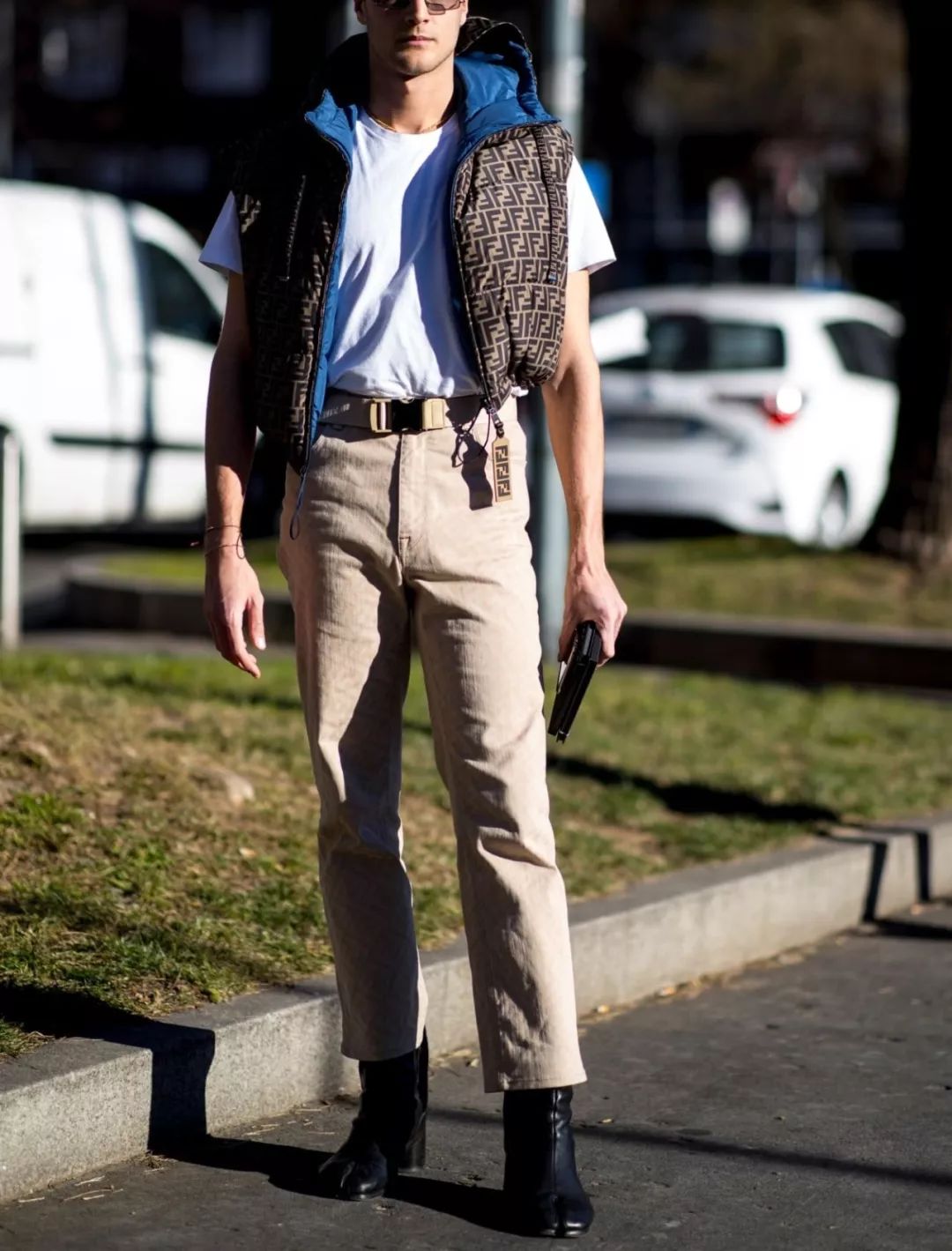 在还没降温的日子里,羽绒马甲+T恤的组合也未尝不可。