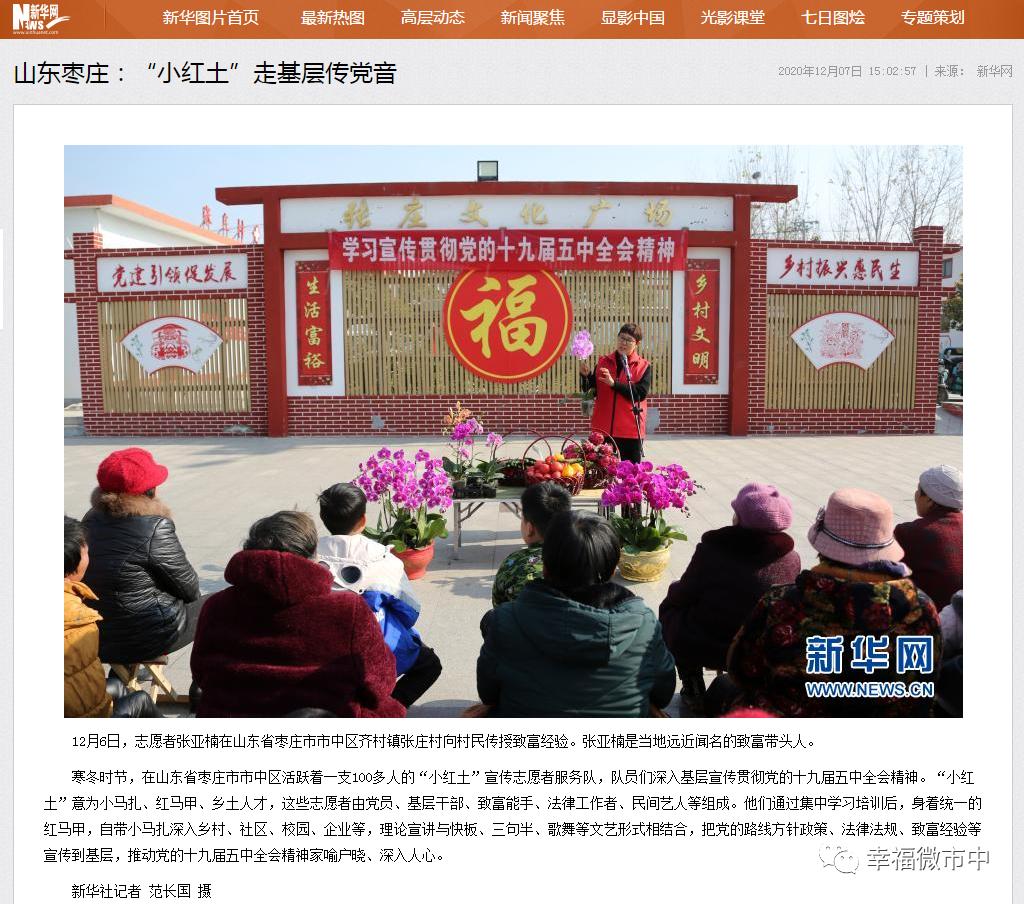 原标题:《新华社播发通稿《山东枣庄:“小红土”走基层传党音》》