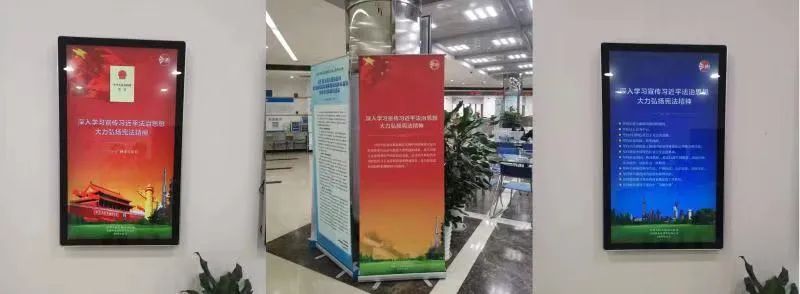 徐汇区税务局设计打造宪法宣传走廊,通过内部办公区域和办税服务场所的易拉宝、电子屏等渠道放映宣传海报,号召深入学习宣传习近平法治思想,大力弘扬宪法精神。同时,在纳税服务过程中融入普法宣传,进一步营造依法诚信纳税的良好氛围。