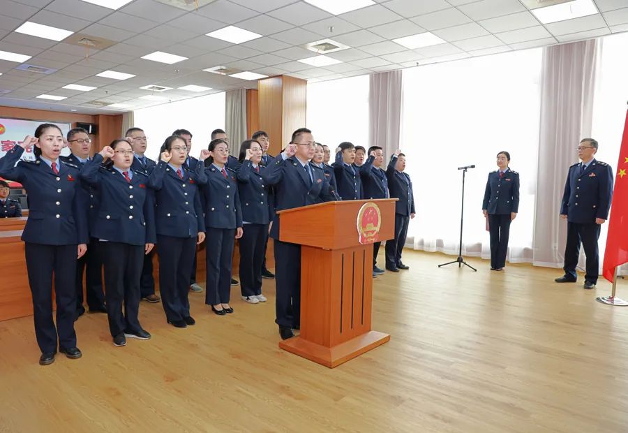 金山区税务局举行全局机构改革后提任的科级领导干部集中宪法宣誓,进一步激励、鞭策区局领导干部队伍铭记誓言,做合格的国家工作人员。