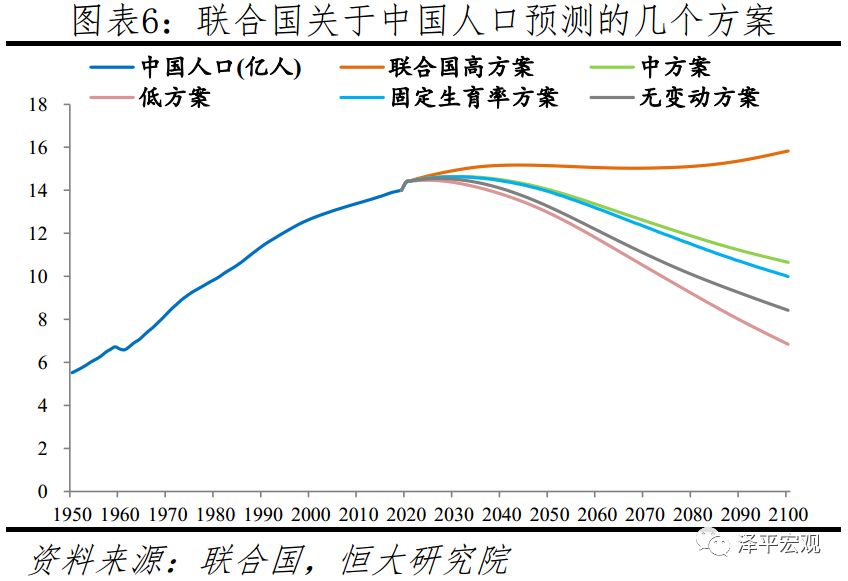 联合国对中国人口增长同样存在高估,中方案预测2031年达14.6亿人的峰值。联合国《世界人口展望(2019)》对中国人口有9个预测方案,其中中方案假设2015-2020年、2020-2025年、2025-2030年中国总和生育率分别为1.70、1.72、1.73,进而预测中国人口将在2031年迎来14.6亿的峰值。此外,其低方案假设2015-2020年、2020-2025年、2025-2030年中国总和生育率分别为1.45、1.32、1.23,人口将于2024年达到14.5亿的峰值。