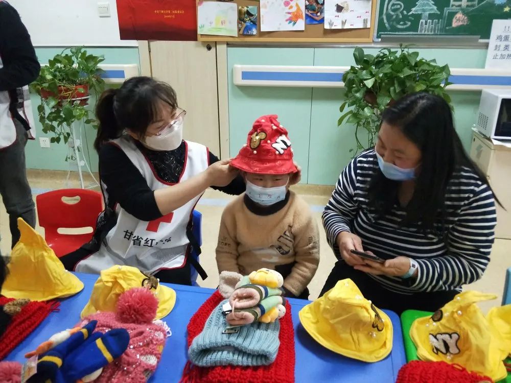 12月4日,兰州市气温虽然持续下降,但是兰州大学第二医院血液科的白血病患儿心里却热乎乎的:在第35个国际志愿者日来临之际,甘肃明睿心理援助红十字志愿服务队的志愿者为孩子们送去了装有围巾、帽子、手套等御寒的温暖包,帮助孩子们度过一个温暖的冬天。
