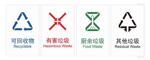 备注:请参与投稿的作者按照住房和城乡建设部2019年12月1日正式实施的国家新标准《生活垃圾分类标志》进行创作,以上垃圾分类的颜色及标识为最新国标。