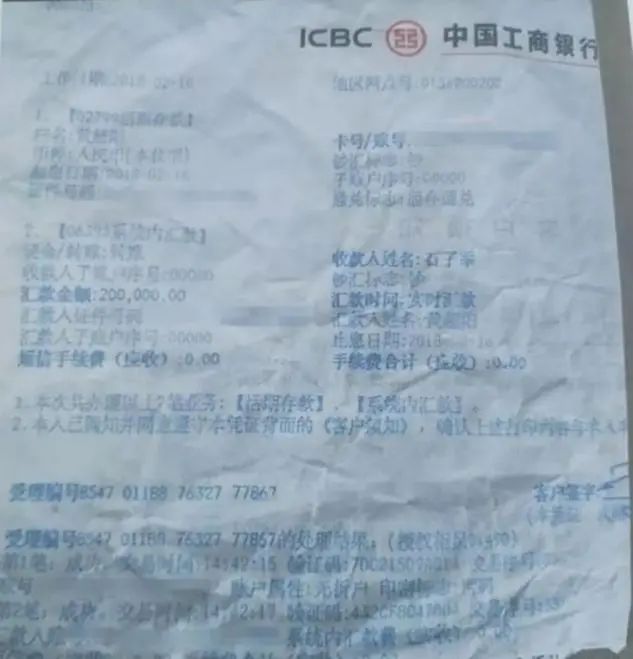 这就意味着,最晚于16日凌晨,李萍被摘除的器官就要移植入受体的体内。同一时间,一位户名为"黄超阳"的人通过银行向石祥林的堂哥石子军汇款20万元。