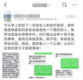 8月19日,石祥林收到一个显示归属地为青岛的陌生号码短信,短信显示:"本来就是你的家庭悲剧的制造者,不明真相的还以为你有多高尚,说白了你就是为了多拿到钱而已,村里给你家办了低保,民政局给你4.8万,杨医生总共给你66万……想想你母亲的死,没有杨素勋你家更惨!"