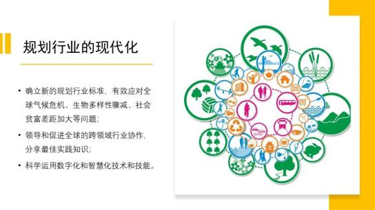 规划行业亟需通过确立新的规划行业标准,有效应对全球气候危机、生物多样性骤减、社会贫富差距加大等问题;领导和促进国际跨领域行业协作,分享最佳实践知识;加快数字化和智慧化技术和技能在规划行业的应用,提升行业竞争力。