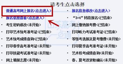 点击上图“开始报名”按钮、手机短信密码验证无误后,打开春、夏季高考选择页面,如下图: