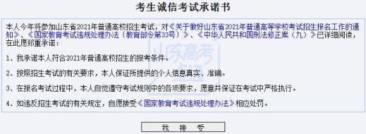 点击上图“网上报名进行中,点击此处开始报名”,打开考生诚信考试承偌书,如下图: