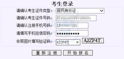 依照系统提示,考生确认个人证件号码、手机号码正确后,将收到的手机短信密码填写,点击“开始报名”、系统进行验证手机短信密码,无误后才可以继续操作。