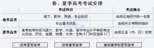 若考生报考了夏季高考,其夏季高考部分信息如下图: