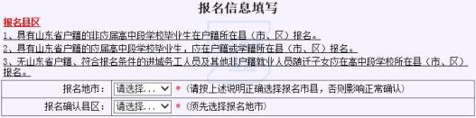选择报名市,系统会提示该市招考办重点提醒,如下图: