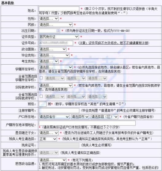 点击“确认”按钮,打开考生报考信息填写页面,如下图: