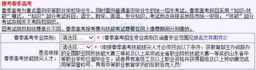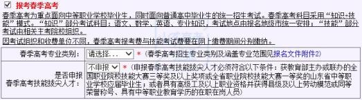 考生若报考春季高考或春夏季高考兼报,其春季高考部分选项如下图: