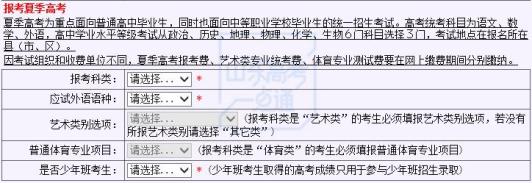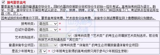 考生若报考夏季高考或春夏季高考兼报,其夏季高考部分选项如下图: