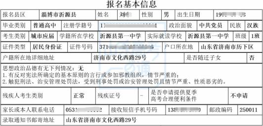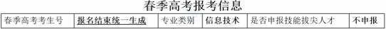春季高考考生报名成功及夏季高考考生选考科目保存成功后,跳转至“报名信息查看”页面,如下图: