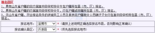 请提醒考生正确选择报名县区,特别是提醒就读学校驻地与户口所在地不一致的考生,避免选错、影响确认,甚至影响录取。