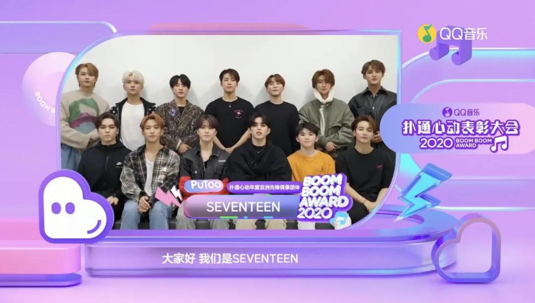 “扑通心动年度亚洲先锋偶像团体”则被颁发给了SEVENTEEN,作为实力爱豆男团,SEVENTEEN舞台演绎帅气多变,他们不断通过音乐创新,在这个时代留下专属的音乐烙印。