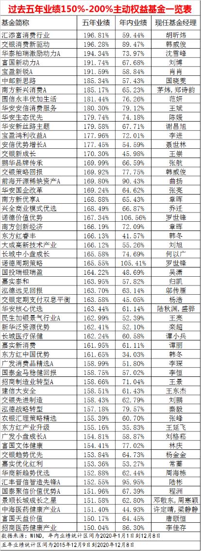 业绩紧随其后的是也是易方达旗下、由肖楠管理的易方达消费行业,期间收益达到275.62%。此外,银华富裕主题、景顺长城鼎益、景顺长城新兴成长、前海开源国家比较优势、万家行业优选、中欧时代先锋A、信达澳银新能源产业、东方红睿元三年定期、易方达新收益A、嘉实新兴产业、工银瑞信战略转型主题等基金业绩也超过200%。