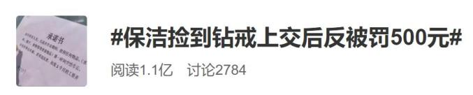 3. 保洁员捡钻戒上交反被罚500元!理由是:交晚了