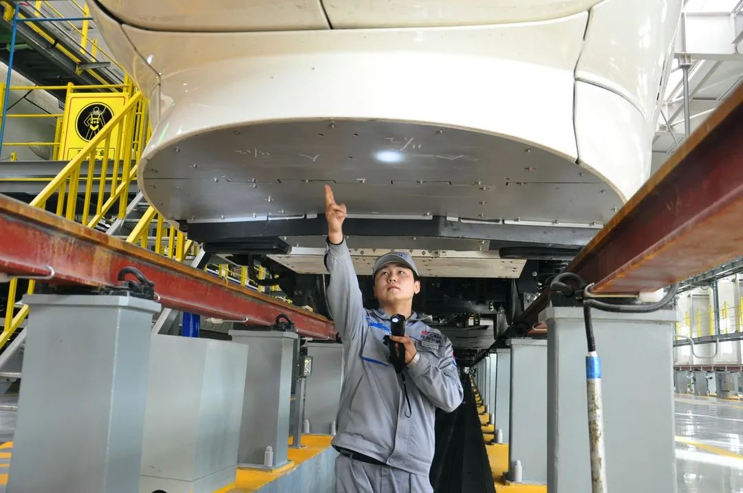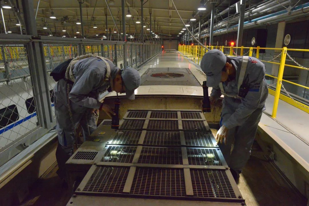 动车所检修人员要按照标准,每隔3天为热备车进行全身体检。他们要检查动车组转向架及各裙板、盖板、头罩,巡视车内设备、牵引系统、制动系统,并进行各系统功能实验,备齐随车工具。