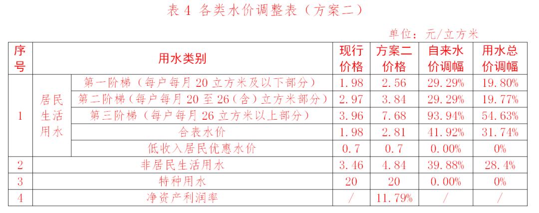 ● 非居民生活用水收费标准调整为4.54元/立方米,特种用水价格维持20元/立方米。