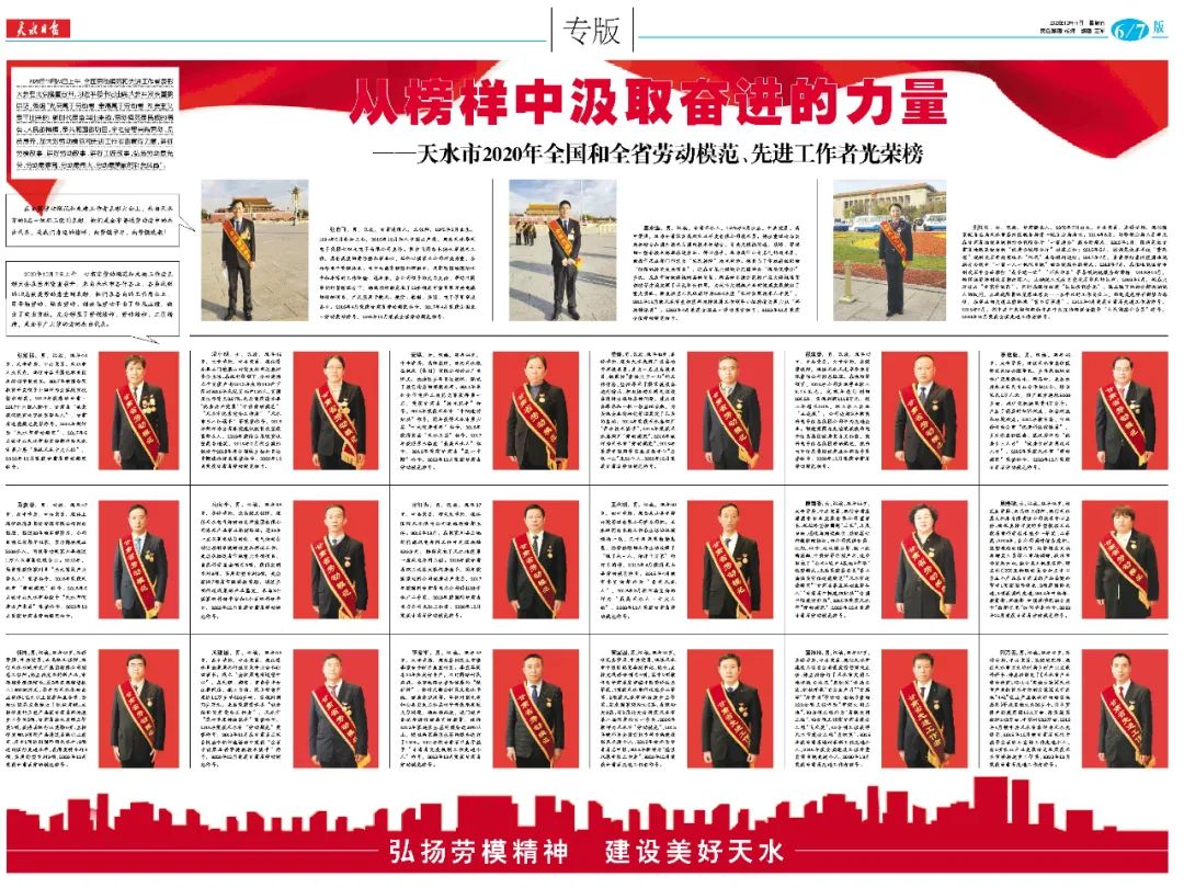 原标题:《天水市2020年全国和全省劳动模范、先进工作者光荣榜》