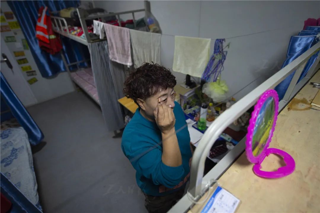 ▲12月4日上午,容东片区E2组团安置房项目的塔吊队长王凤敏在上岗前梳妆打扮。她管理的塔吊队共有60多位塔吊司机,其中女性仅两位。