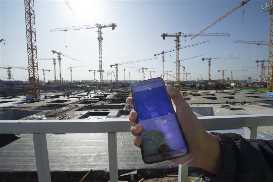 ▲11月3日,在由中建二局承建的雄东片区安置房项目上,管理人员通过“雄安建设”客户端实时查看环境监测数据。在雄安大大小小的各处工地,智慧工地平台得到了广泛应用。