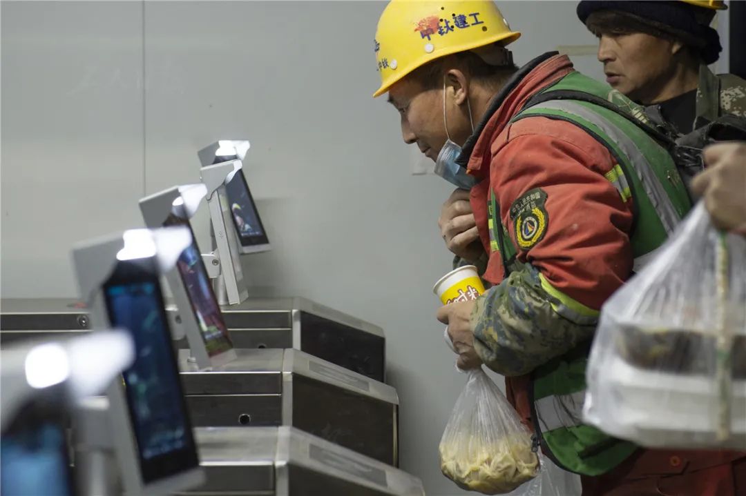 ▲12月2日,在中铁建工集团北京分公司的职工宿舍门口,一名工人下班后通过人脸识别闸机穿过实名制通道。