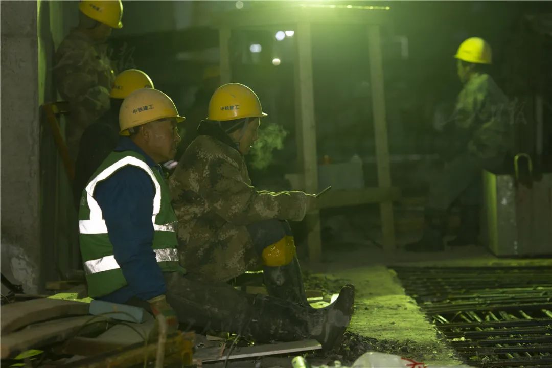 ▲12月2日凌晨,几位混凝土工在工作间隙靠墙休息。