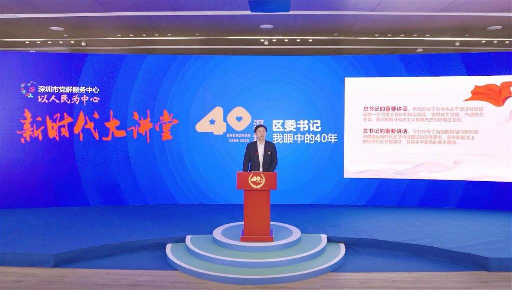 为认真学习宣传贯彻习近平总书记出席深圳经济特区建立 40 周年庆祝大会和视察广东、深圳重要讲话、重要指示精神,近日,市委组织部推出新时代大讲堂 " 区委书记:我眼中的四十年 " 特别课程。深圳各区委书记(新区、深汕特别合作区党工委书记)围绕经济特区建立 40 周年的思考与实践,结合本区经济社会发展实际,谈改革历程、说经验启示、话工作思路。