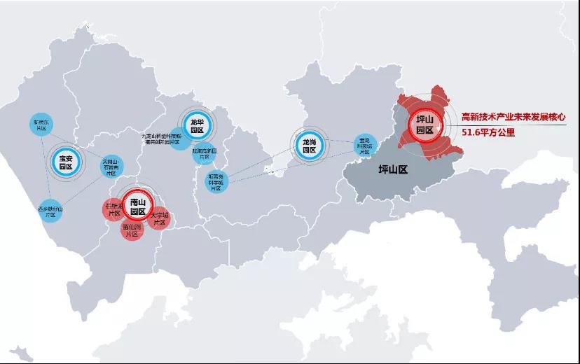 作为一个年轻的行政区,坪山是一片创新创业的热土,产业集聚、创新活跃、配套完善、生态优美,被市委市政府定位为深圳东部中心、深圳国家高新区核心园区和深圳未来产业试验区。