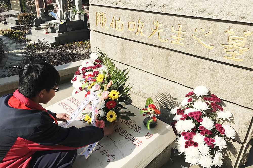 为了塑造学生“求真、崇善、尚美”的品格,陈伯吹中学不仅整合以传承陈伯吹精神为特色的乡土教育资源,开展植根于乡土的“爱家乡”教育活动,还充分利用校园内“红十字纪念碑”这一独特红色资源,每年开展“红领巾冬至祭扫”主题活动缅怀先烈。此外,结合革命传统和家乡历史,学校还发挥雷锋的时代精神,坚持开展“学雷锋”主题系列活动,倡导学习雷锋、热爱家乡,关爱身边的伙伴,树立志愿服务的意识,鼓励学生走进社区,为美化家乡做出自己的贡献。