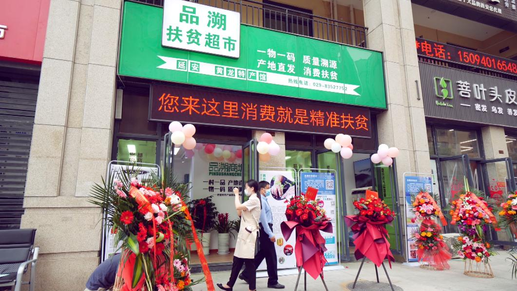 5月24日,陕西省首家县域农产品精准扶贫超市——品溯扶贫超市黄龙特产馆在西安市未央区萧家巷名京九合院盛大开业,核桃、蜂蜜、连翘茶、羊肚菌等60余种来自黄龙大山里的农特产品吸引了众多市民前来购买。品溯扶贫超市黄龙县特产馆运用已打造成的智慧农业物联网平台,专门对农副产品进行品牌塑造、质量溯源、包装提升,线上线下销售。每年从销售总额中提取5%用于设立黄龙县消费扶贫基金,年终为贫困户分红收益。线上+线下的销售模式,为黄龙县农产品销售打开了新路径,让群众的增收致富路越走越宽。