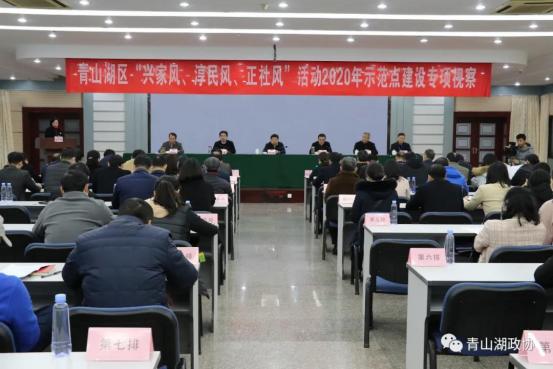 12月11日下午,青山湖区开展2020年“兴家风、淳民风、正社风”活动示范点建设专项视察。市政协副主席陈匡辉、黄清玉,秘书长饶小敏,市“三风”办副主任刘绍友等应邀出席,区委书记王强,区委副书记、区长袁一旦,区政协主席邹艾民,区政协副主席熊馨梅、马进、胡小明、陈学良、黄邵华出席,区“三风”活动领导小组成员,区政协常委会组成人员,各镇街、园区政协联络组组长等,共计80余人参加。活动分现场视察和座谈交流两个阶段。