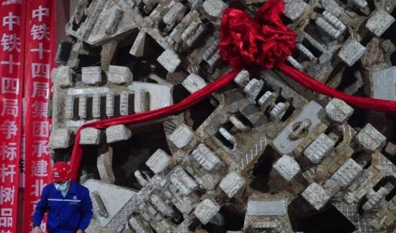 今天上午,在东长安街南侧的40米深的接收井内,随着直径达6.28米“正阳二号”盾构机刀盘破土而出,由京投所属轨道公司负责建设管理、中铁十四局集团承建的北京地铁8号线三期工程前门站至王府井站区间实现双线贯通,标志着贯穿北京南北中轴线的地铁8号线隧道区间工程全线贯通。