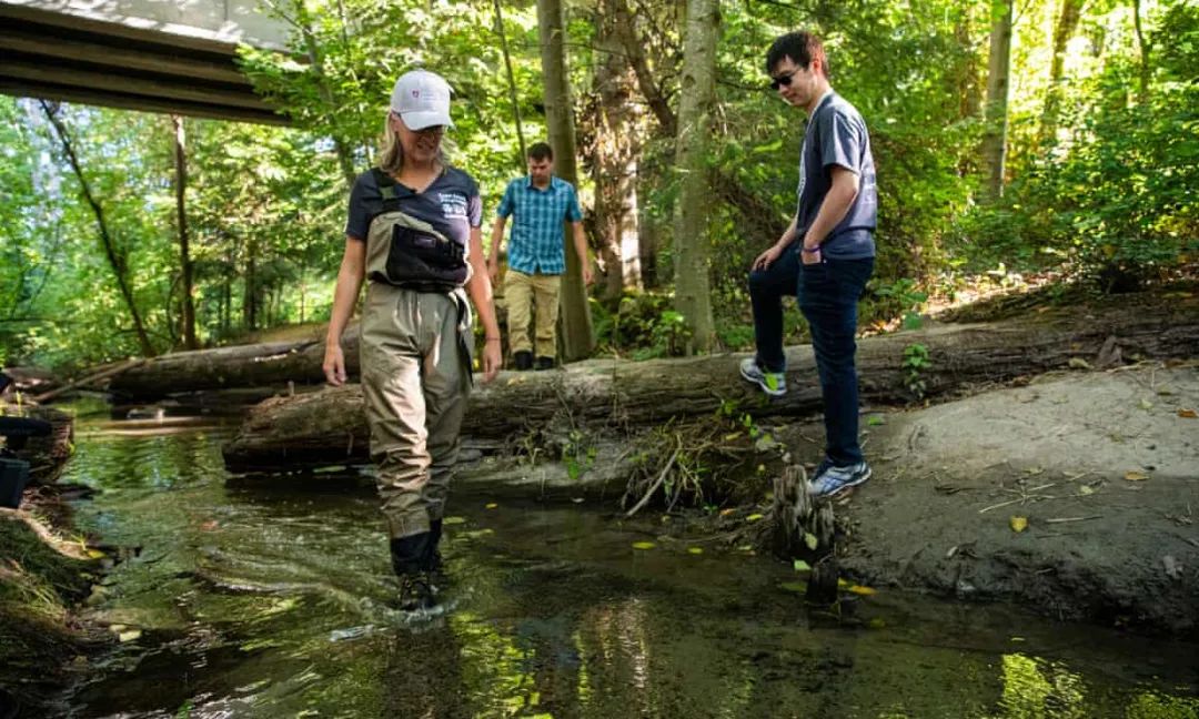 研究者在西雅图地区的一条小河调查银鲑的死 | Mark Stone / University of Washington