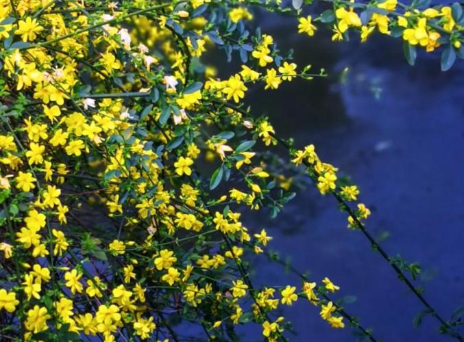 迎春花因其在百花之中开花最早,花后即迎来百花齐放的春天而得名。花色为黄色,先开花后长叶,具有清香。别名黄素馨、金腰带。