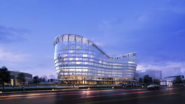 该项目位于赣江新区临空组团祥和三路东侧、儒乐湖大街北侧、祥和二路西侧,现场外立面为玻璃幕墙,整个曲面效果非常凸显特色,辨识度高,同时引入四星级维景酒店,填补了昌北机场周边无四星级酒店空白。