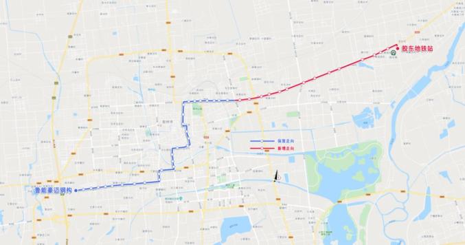 (9)胶州16路由“阜安工业园—鲁能豪迈钢构”局部调整并延伸为“鲁能豪迈钢构—胶东地铁站”