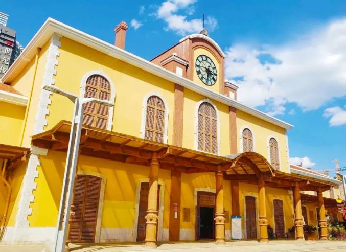 从D出口出站即可以看到一栋格外耀眼的黄色法式建筑,这便是云南铁路博物馆。博物馆内收藏或展示文物、文献万余件。博物馆由南馆和北馆组成,南馆以百年滇越铁路“云南府站”法式古典建筑为原型,北馆为萃取高铁旅客车站元素的现代建筑。于此,可一览云南轨道交通腾飞史,特别是米轨铁路的发展史。铁路博物馆浓缩了云南铁路百年风雨历程。