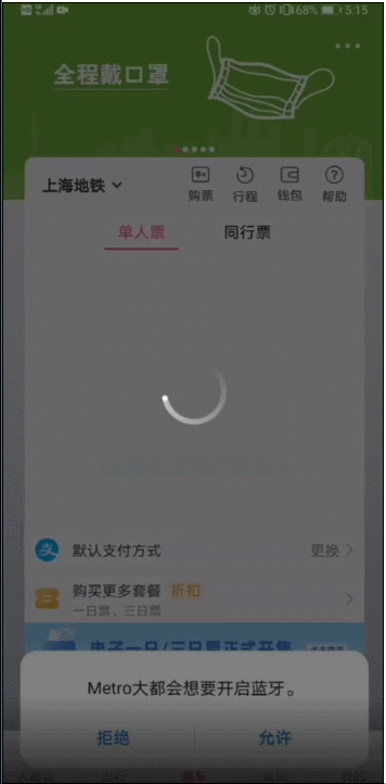 在随申办、北京亿通行上切换上海地铁乘车二维码支付方式的时间与Metro大都会一致,均可实现立即切换。