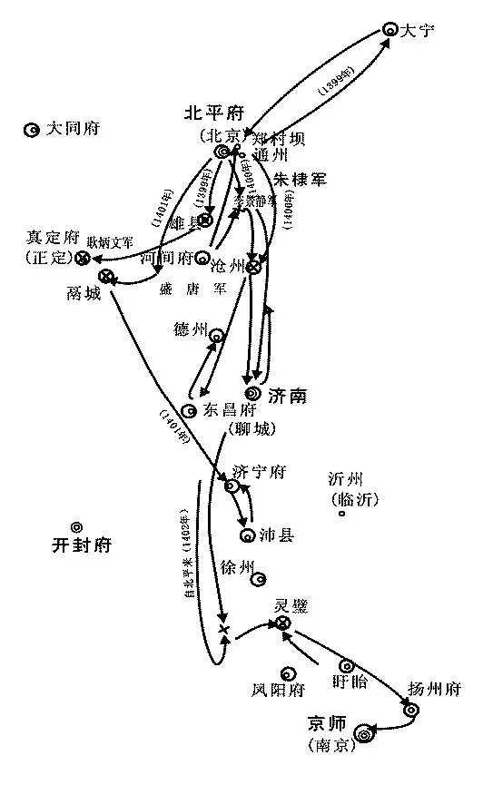 1398年6月24日,明朝开国皇帝朱元璋去世,长孙朱允炆即位,史称建文帝。坐拥北京被封为燕王的朱棣不甘心,他以“靖难”为名起兵南下。建文帝调兵30万北上平叛,于是在河北、山东一带进行了长达三年之久内战。史称“靖难之战”,民间流传“燕王扫北”。