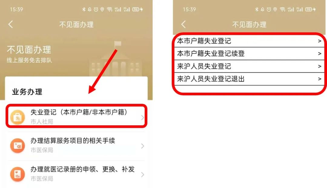 实名登录APP,首页直接搜索【失业登记】,或底部切换至办事频道进入“不见面办理”专区。