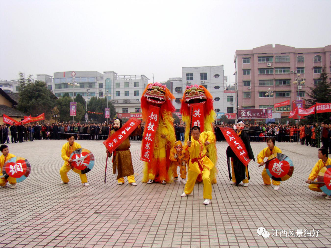 客家灯彩——活灵活现。铜鼓客家狮、太平灯、渔樵耕读、七鲤抢虾等灯彩都是群众喜闻乐见的欢庆活动,均入选了省级非物质文化遗产保护名录。其中,铜鼓客家狮将狮由“怪兽”化为“神兽”,并通过舞蹈、武术、杂技、戏剧等多样性表演来表达新春祝福。铜鼓客家狮一般从每年农历初一始在祠堂内请神、拜狮、起蘸,正月十五勾灯结束。其间,每到一村先寻一开阔地表演孙悟空、猪八戒、沙和尚降狮(三僧伴舞风趣幽默,狮有熊狮、眼狮、闷狮等动作);另有叠花架,十八般武艺对练,杂技表演等,全套表演人数十四人,时间约二小时左右。表演结束后由悟空引狮至各家送福送喜。