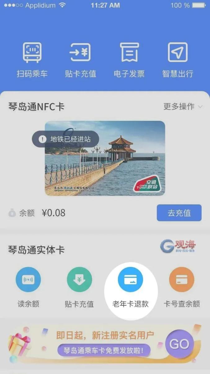 自2021年1月5日起,使用带有NFC功能的手机下载“琴岛通”APP,实名认证并绑定微信后,把琴岛通老年半价卡贴在手机背面NFC功能感应区,系统自动将老年半价卡内的余额清零,资金退到绑定的微信账号内,同时将老年半价卡升级为老年免费卡,并自动充值200元虚拟金额(退资升级过程中请勿移动挪卡)。