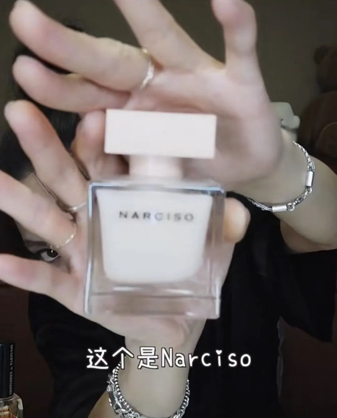 王霏霏推荐的这款香是1889,前调是橘子、西梅和肉桂这种酸甜味,重点是苦艾和玫瑰,后调则是鸢尾和广藿香。根据王霏霏的形容,觉得“闻到的第一下就有口红味”,非常特别,“味道很艳丽”,“穿得很性感的时候会喷”。//Narciso Rodriguez